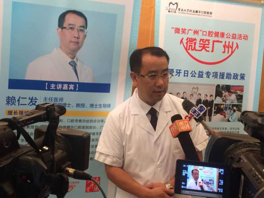 讲座结束后,南方卫视、G4出动等媒体采访了赖仁发院长。赖院长表示,种植牙手术是已经在全世界开展的成熟的技术,能较好的恢复缺失牙患者的牙合功能,希望能获得更多老年缺失牙患者的接受。希望年轻一代能出于关怀关爱关心的目的,推荐推介年老的长辈们,去关注种植牙,去接受种植牙,乐享美食!