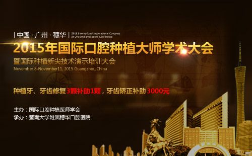 为了推动国际上种植技术的进步与发展,国际上历史悠久的国际口腔种植医师学会携手穗华口腔医院,举办2015年国际口腔种植大师学术大会暨国际种植新尖技术演示培训大会。届时将有各国口腔种植名医专家团齐聚穗华口腔,带领金牌种植研究员学习国际领先的种植牙新尖技术,共同分享种植学术成果,此次学术大会将引领国内种植牙技术到达新高峰,敬请各位期待。