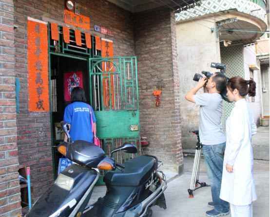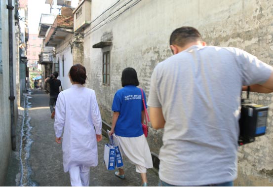 穗华口腔医院医生及工作人员跟随南方电视台今日一线记者正往吴正新家中走去。