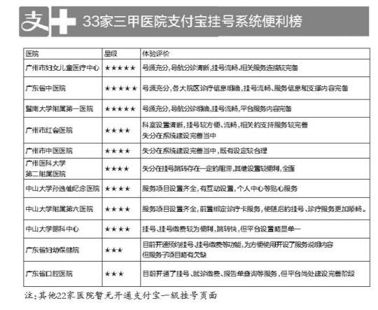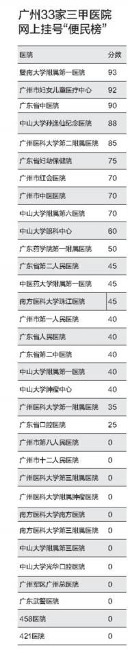 究竟哪家医院的系统建设得具服务性、为便捷呢?为此,本期南都指数从微信、支付宝两大挂号平台服务的实用性和使用便利性两方面,进行体验式评估。后按照事先设定好的评分体系,南都记者通过打分的形式,对上述各大医院的预约挂号系统进行逐一打分排名,后得出“广州三甲医院网上预约挂号便民榜单”,暨南大学附属第一医院名列前茅。