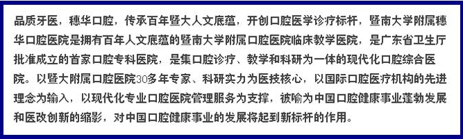 穗华口腔医院正式开业后,将以公立医院的人才、技术为主导,而服务、管理运作则由社会力量主导。目前,由暨南大学附属医院移植、多点执业过来的医生达28位,加上50多位国际级专家,构成了穗华口腔医院的主要医疗班底,而且由于有了广东科康医疗集团5000万元的资本注入,穗华口腔医院引进了国际的数字化口腔诊疗全套设备200多台/套,打造拥有一流人才、技术、服务、管理的教学型附属医院,为市民提供、正规的口腔诊疗服务。