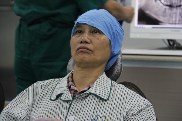 手术开始前,郑阿姨漱口,保持口腔清洁。