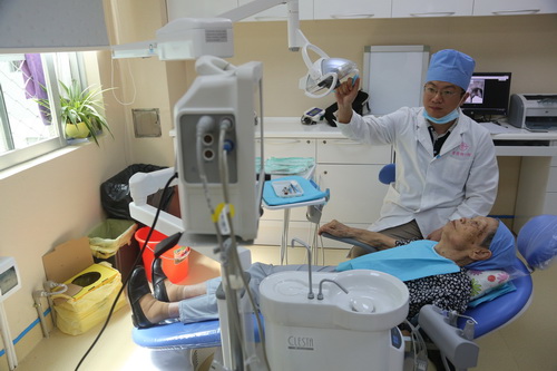 口腔科贺文鹏副主任医师为黄爱廉老人拔牙